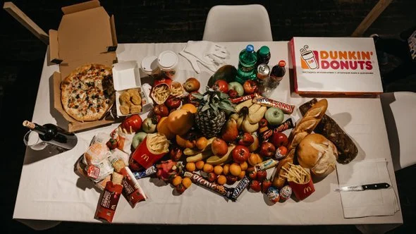 Mindless child and responsible adult alike, no one is immune to excess. In this performance, I was building a revolting picture, eating without manners, having no control over my intake, chewing together foods in disgusting combinations, and finally, leaving it all to rot in the gallery for 2 weeks. Repeating the violence and repulsion of abundance that I saw in Flemmish still-lives, I exhibited it again in different terms.